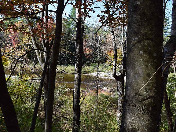A Private drive to a a recreational getaway in the White Mountains! Custom built camp on 1.7 private wooded acres that comes with 1/10th deeded shared use of land on the River off River Road! This camp is set up with a lofted one bedroom and an open main floor space. Heated with a woodstove with plenty of room to expand or add on. Included is a metal framed storage shelter adding lots of storage for your toys & equipment. There is an existing dug well on site and this may need a new pump or repair for proper water pressure. Electric hook up is possible and previously quoted as needing just one pole. An affordable getaway within minutes to downtown Bethlehem and Littleton for shopping and I-93 for commuting. Access is a narrow shared private unpaved road and deeded right of way road. A private and posted as No trespassing- Please call for drive by viewing information. This is not a short-term rental area and no recreational vehicle road. Enjoy nearby hiking, biking, snowmobile connectors, fishing, swimming holes, skiing, hunting and scenic foliage leaf peeping in abundance all within respectable distance. Come enjoy this greater White Mountains property. Right of way and frontage measurements are estimated based on tax map.