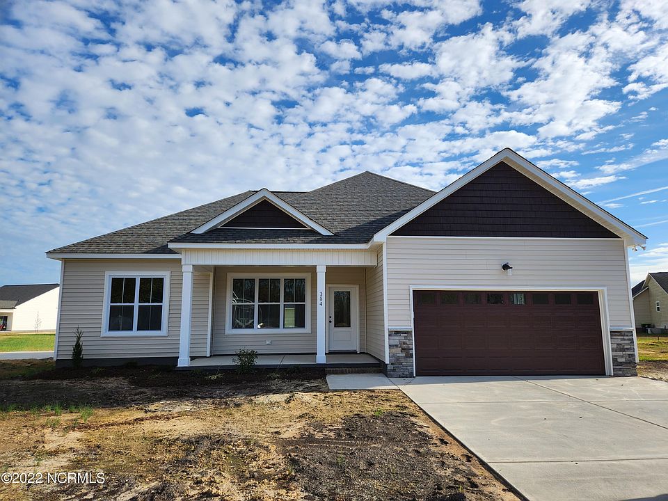 Three bedrooms and 2 baths home with NO CITY TAXES. Split bedroom design with all of GBC standards including custom wood closets, LVP flooring in main living areas, granite kitchen tops, under mount sink in the kitchen, linear fireplace with shiplap accents, covered front and rear porch and more. Quality Grimes Built Construction. Broker is licensed real estate agent. Photo is the same floor plan.