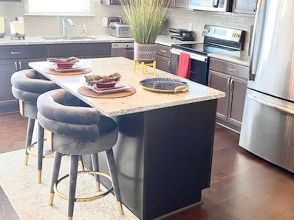 Upgrade your life in this Southwest Atlanta Townhome. This fully furnished modern home is renters dream. Newly built Townhouse perfectly nested in a quiet new neighborhood within South Fulton Atlanta. You are less than 15 minutes from Hartsfield Jackson International Airport and the Georgia International Convention Center. The home is within minutes from I-285, that will easily put you within 20-25 minutes of Downtown Atlanta, the Mercedes Benz Stadium, Centennial Olympic Park, Piedmont Park/Midtown, Atlantic Station, Georgia Aquarium, Truist Park, and a host of other attractions and hot spots. Other things to note: The entire home is welcome to the guests for relaxation and enjoyment. However, the community clubhouse with pool and tennis court will not be accessible. There is a shopping plaza that's right in front of the community that has a convenient store, restaurants, popular lounge, and wellness spa; it's walking distance from the home. Utilities Included