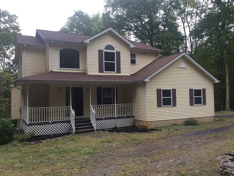 Looking For Privacy ? Thats just one of the appealing things about this property. Set Back Off The Road with A Circular Driveway, Attached Two Car Side Entry Garage, A Unfinished Walk Out Basement leading to a Stone Patio & Deck in the Ample Sized Wooded Yard. A Large Country Front Porch leads you in through the Foyer to The Living-room featuring a Stone Fireplace , Breakfast Nook Area With Sliders to Deck, Eat In Modern Kitchen with Recessed Lighting and Peninsula Island. Laundry Room, Main Bathroom and Formal Dining Room.Central Air Conditioning ,3 Bedrooms are offered on Second Level along with Two additional Bathrooms and a Linen Closet. Master has dual sinks, Dual Closets, Stand Up Shower & Whirlpool Tub. Attic Access thru 2nd level. Buyer Pays 2% Transfer Tax