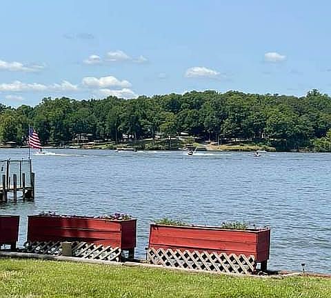 2984 sq ft 4 bed 4 bath, office or 5th bedroom. Family room, living room, dining room, laundry room upstairs with extra washer/dryer connections downstairs. Sits on 2 lots. Central heat and air (2 units) 2 septic tanks. Upstairs deck with double door entry. Large 2 car garage. Fenced in cement pier. Boating, fishing. High Rock Lake with Great Lake view.