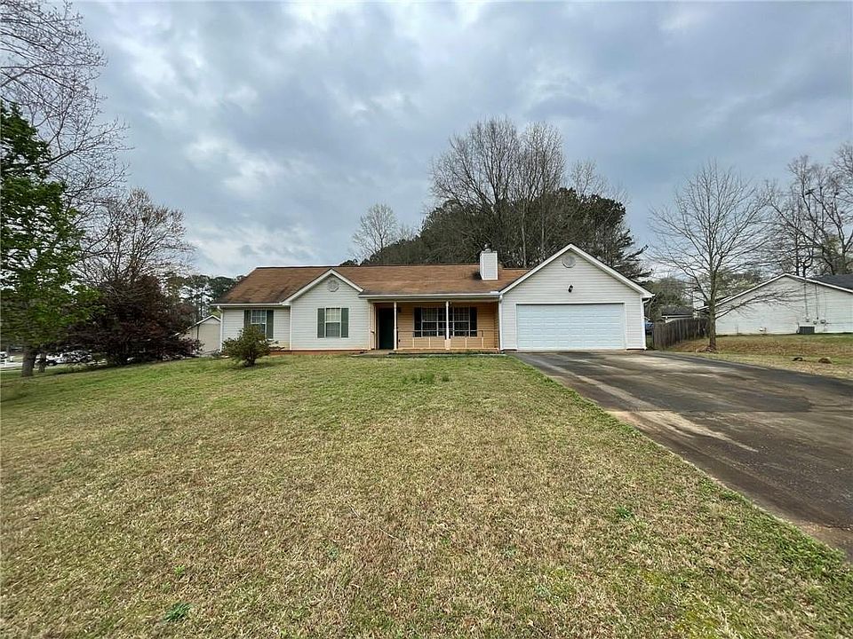 This solid ranch home is perfectly situated in a quiet neighborhood that is walkable to the Hampton square. There is wood laminate flooring in living room, hallway, and primary suite. The spacious living room features a vaulted ceiling and gas fireplace. The kitchen is open to the dining area. The primary suite features a trey ceiling. The covered front porch is perfect for lounging with family and friends. The back 3/4 of the garage has been enclosed into a studio/workshop with built-in shelving and additional shower and toilet and stubbed for a sink...perfect for the artist or craft person. Or it could be used for a home office. The front part of the garage can be used as storage and has an operable garage door. Fenced back yard. This home is loaded with potential. Sold "as-is".