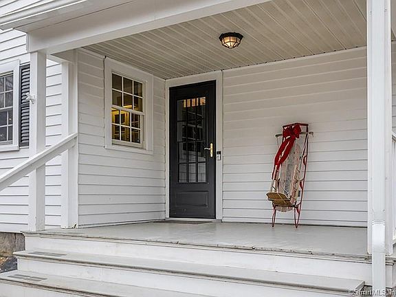 1880's Colonial with newly remodeled kitchen and baths. There are hardwood floors throughout and a first floor bedroom with a full bath. Located on a quiet town road with 7.5 acres of level land that includes frontage on the Bantam River. This home has a new roof, new 200 amp electric service, security system and stackable washer & dryer. The kitchen features granite counters, painted wood floor, breakfast bar and pantry. The is a formal dining room with wainscoting and French doors to a patio. The gracious living room includes a wood burning fireplace, built-in bookshelves and wainscoting. The upstairs bedrooms both have French doors to a terrace overlooking the grounds with many new plantings, fruit trees and flower gardens. There is a one car detached garage, a ring system doorbell that shows you who is at the front door and security cameras. THE GUEST COTTAGE IS NOT INCLUDED.