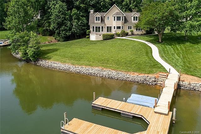 Year round BREATHTAKING waterfront views are included with this exquisite home! Live everyday like on vacation at this amazing home located on 271 feet of deep waterfront property that features a beautiful boat dock and boat slips. Warm and inviting, the kitchen is perfect for entertaining with ss appliances and granite countertops and leads to the oversized deck where your views abound. Family room features a wood burning fireplace and built in bookshelves. Spacious Owners suite is conveniently located on the main level and the owners bath includes dual sinks, soaking tub and walk in shower. Upstairs you will find large secondary rooms and bedrooms-TWO oversized rooms are perfect for a media, playroom or even a bedroom- you decide!Entire home freshly painted Excellent location just minutes from shopping, dining and 77. Community amenities include boat ramp, outdoor pool, clubhouse and tennis courts. Don't miss your chance to wake up to stunning waterfront views everyday!