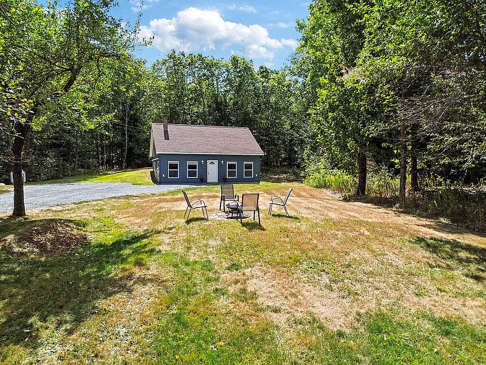 Built in 2015 and meticulously maintained, this unique 2-bedroom home with a loft blends modern comfort with cozy rustic charm. Privately situated on 2.1 wooded acres, you'll enjoy the perfect mix of seclusion and convenience — just a short drive from town yet surrounded by nature. Inside, cathedral ceilings create an open and airy atmosphere, while sliding barn doors and warm wood finishes add timeless character throughout. The loft overlooking the living room makes a perfect office, reading nook, or creative space. This home offers three heating sources for year-round comfort: a heat pump (which also provides cooling in the warmer months), a wood stove for cozy winter nights, and a Rinnai heater. Adventure seekers will love the direct access to snowmobile trails, making this property a recreational dream. Access the home via a deeded Right-of-Way, with additional road frontage on Nowell Road. Don't miss your chance to own a piece of Maine tranquility with modern touches and endless outdoor opportunities. This one is a must-see and won't last long!