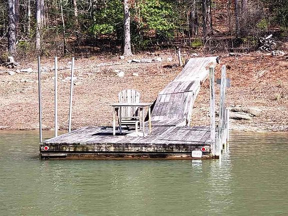 Great Kerr Lake front neighborhood! Singlewide mobile home on this half acre lot needs a lot of TLC. Carport/boat shelter, storage building, wooded lot. Huge deck & screen porch off the rear of the home. Private dock on the water - #1729.