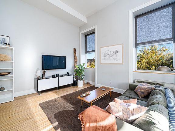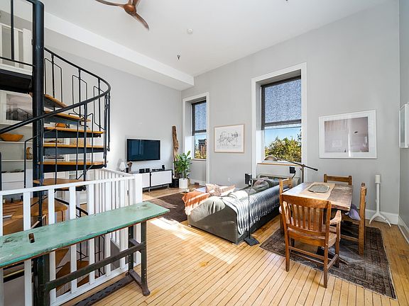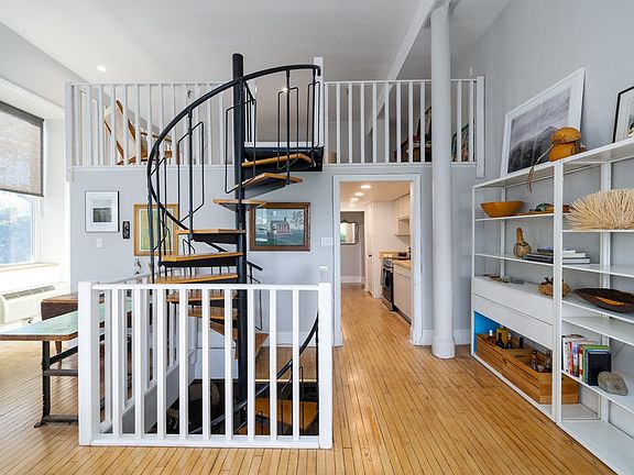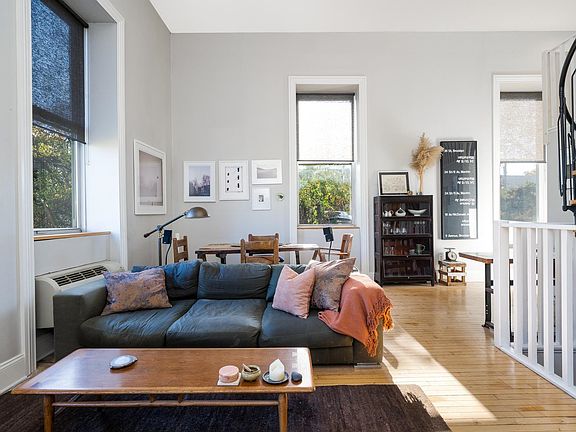 Bright, loft style condo in Pohlmann's Hall, a historic factory conversion listed in the National Register of Historic Places. Located on one of the most desirable streets in Jersey City Heights, #1B offers a private entrance from your personal parking spot & is the largest home in the building with 1900 square ft. of interior space over 3 floors, an exclusive deck, side yard, NYC views & sunlit southeastern exposure. With 2 bedrooms, a modern kitchen, super high ceilings, oversized windows & walk-in cedar closet this apartment has it all. Elevator building with a common yard, storage room, and bike room. Laundry on every floor. Close proximity to Hoboken, light rail, bus to NYC, local parks, community garden, shopping and restaurants.