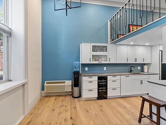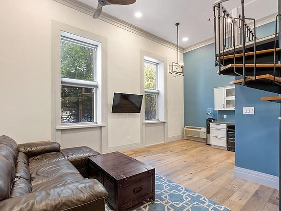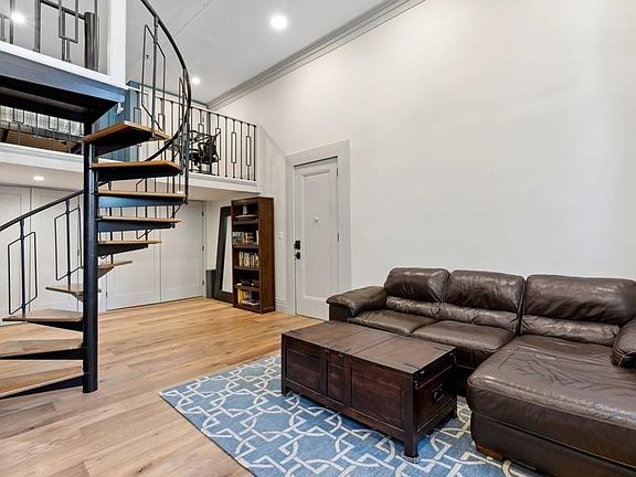 Incredible opportunity to own a beautifully renovated one-bedroom condo with parking on Jersey City Heights' most exclusive and charming tree-lined street. This stunning loft-style unit is located in the historic Pohlmann's Hall building and boasts impressive 17-foot ceilings, oversized windows, crown molding, and brand new hardwood floors throughout. The main level offers an inviting open-concept living space, including a spacious living room, dining area, and a brand new kitchen. The modern kitchen features new cabinetry, quartz countertops, and top-of-the-line Bosch appliances, making it a dream for any home chef. A spiral staircase leads to a loft area that can easily accommodate a full bedroom and an office space.The building provides a range of amenities for your convenience and enjoyment: gated parking, a private garden perfect for hosting gatherings, laundry facilities on every floor, storage options, and a bike room. Plus, the location is unbeatable, just minutes away from the 2nd street light rail station, express bus routes, and the staircase to Hoboken, making your commute to NYC or downtown Jersey City a breeze. You'll also love the proximity to Riverview Park & Community Garden, a dog park, and the vibrant Riverview arts district, which is filled with cozy coffee shops, bakeries, bars, restaurants, and entertainment venues. And the best part? This building is pet-friendly, so your furry friends are more than welcome. Schedule your showing today!