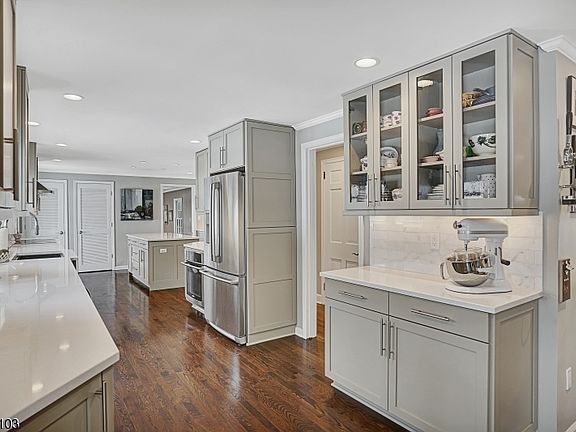 Completely renovated 4 bedroom, 2.5 bath classic Bernardsville center hall colonial combining timeless elegance with modern amenities. Updated with beautiful appointments including original crown moldings, custom paneling, new windows, Hardi-Plank siding! Stunning kit w custom cabinetry, quartz counters, center island, eat-in area, SS appliances, built in desk area, w/in pantry, access to blue stone patio, sunken family room and formal dining room with French doors to covered patio. Also find the timeless formal living room w custom built-ins and renovated powder room. Upstairs find the spacious Master Bed w newly renovated bath, and w/in closet, three additional bedrooms and main bath. Breathtaking sunrises from the covered front porch and bluestone patio with ample space to entertain inside and out.