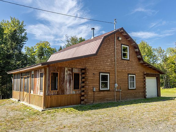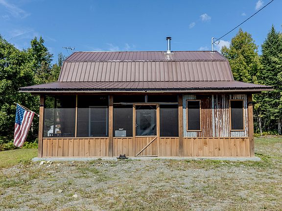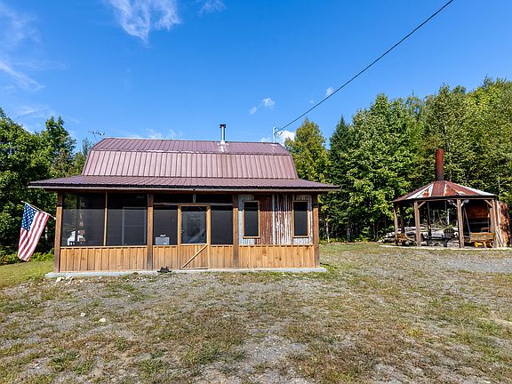 The cabin has a cathedral ceiling in the living room area that adds to the space and charm. Corrugated metal panels compliment pine walls and custom trim throughout. There is one bedroom downstairs and one upstairs with an additional room upstairs that is now an entertainment area but could become a third bedroom. There is a full bathroom on the main floor. Relax in the hot tub that is located on the screened-in porch or entertain family and friends in the gazebo with its outside entertainment area complete with chair swings, a custom-designed stone fire pit, and even a TV! There is an attached one-car garage or storage area as well. The property features a private pond thoughtfully dug by the owner and it adds to the picturesque charm of the property.
