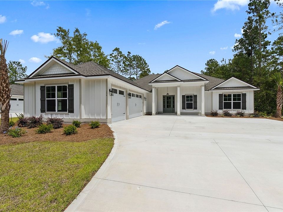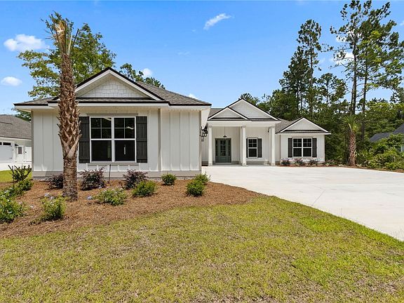 MOVE IN READY! Quality New Construction by Local Builder Josselyn Homes! Don’t miss this opportunity to own a beautifully crafted new construction home by Josselyn Homes Inc, known for quality construction and attention to detail. Nestled on a generous 0.68-acre corner lot in the desirable Estates of Sanctuary Cove, this home offers the perfect blend of privacy and convenience. Located just minutes from I-95, enjoy easy commutes to FLETC, Jekyll Island, St. Simons Island, and Jacksonville. Plus, you’ll be right around the corner from the beautiful Sanctuary Cove Golf Course. This 4 bedroom 2 bath home features maintenance free board & batten siding, a 3 car courtyard garage & split floor. The kitchen boasts an open peninsula kitchen, quartz counter tops, farmhouse sink, custom cabinetry & stainless appliances. The primary suite boast an elegant master bath with double vanity, soaker tub, & tile walk-in shower. A must see home offering many upgrades to include custom wood shelving throughout, recessed LED lighting, wood look tile flooring, crown moulding throughout, & summer kitchen on the covered back porch **Interior pictures from previously constructed property; finishes may vary.** Seller is licensed Real Estate Agent in the state of GA & related to listing Broker.