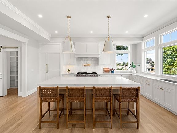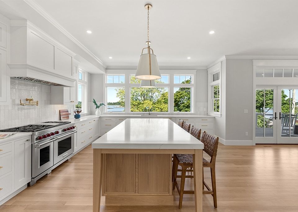 Welcome to 154 Otis St, a stunning new construction retreat in Hingham's coveted Crow Point Neighborhood, offering breathtaking views of Hingham Harbor. This exceptional home features four bedrooms, including two en-suites, three on the second floor and one on the main level, plus a full bath for guest convenience. At the heart of this residence is a designer kitchen that shines with a custom white oak island, inset cabinetry, quartz countertops, and top-tier Sub-Zero and Wolf appliances, including a wine fridge. Transom windows and 10-foot ceilings enhance the open, airy ambiance. Surrounded by professional hardscaping and landscaping, this home is a true oasis, located near vibrant Hingham Square and a brand-new elementary school. Sidewalks provide ease of access, promoting an active and engaging lifestyle. Experience the perfect blend of luxury, comfort, and timeless New England architecture at 154 Otis St, where thoughtful design meets captivating harbor views.