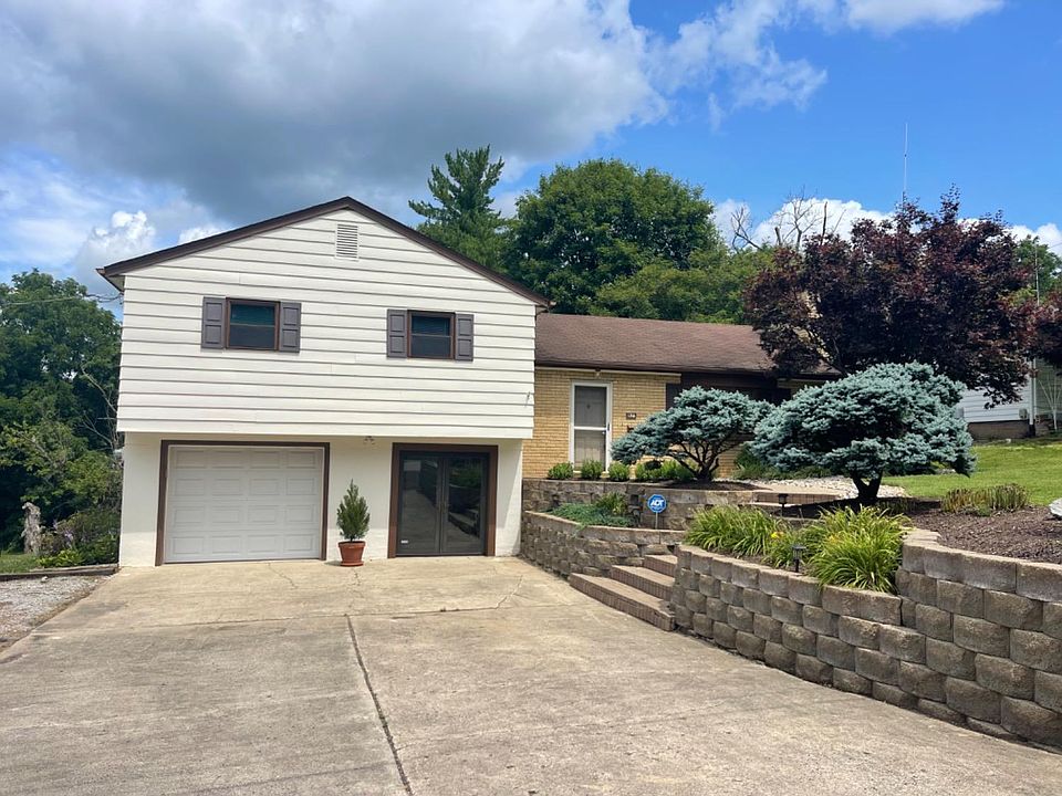 Beautifully Landscaped Large Split-level Home freshly painted with many updates thru-out! Updated Kitchen. New Bathroom with all new fixtures, tile bath, pocket door and walk-in closet. New carpet in living room & entry. Hrdwd floors on upper level. New Flooring in Kitchen, Dining room and Lower level. Half of former two car garage is currently used as a family room with French doors. Extended Driveway. Walk out from kitchen to Covered Deck overlooking large backyard! No flood insurance.
