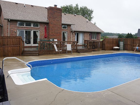 NEW Mohawk carpet 4 rooms/stairs; new exterior lighting; faucet inserts; new window weather caulking. We're living in it but are essentially packed and ready to move as soon as you're ready to take possession...!! All brick 3,053 heated/cooled square feet one level with finished basement; new roof and most rooms painted 2015. Ceiling fans in bedrooms and LR; high vaulted ceilings in several rooms. Great breakfast area to look out long front yard in the morning. Large 20x40 INGROUND pool with diving board on deep end; new liner 2015; pool house with 1/2 bath; 300lb sand filter; with solar heat cover; currently using Baquacil but could be converted to salt water/chlorine. 3 bedrooms with 2 baths up and 1 bedroom with 1/2 bath downstairs; master bedroom access to deck through sliding doors; 2-person whirlpool in master bath; Price Pfister fixtures. New kitchen appliances about 6 years ago; double/convection oven; fridge only upstairs and fridge/freezer down; walk-in pantry; solid maple cabinetry. Wood-burning fireplace in LR that currently has gas insert with remote control on/off and temp setting. 2 car plus storage area garage; rear exit door; attic access. Lots and lots of storage inside house. Hardwood and carpet up; tile-like flooring in bar/kitchen area down and the rest in carpet. New high efficiency inside and outside HVAC units about 5 years ago. About 1200 sqft of deck and about 120 linear feet of 6ft high wood fencing around pool with both being stained this year. 300ft driveway with 3 car parking apron and bball goal; about an acre of flat backyard great for soccer, football and the like. $1,000 weight set in exercise area to stay if buyer wishes. Stats believed descriptive but accuracy but should be verified by buyer.
