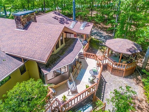 Incredible Ranch Home on Two lots! Very private setting with an amazing rear deck and patio space, with a Gazebo. Gorgeous vaulted living room, wood beams and a Custom Stone Fireplace, with gas logs. The kitchen has lots of light, hand painted tile back-splash, tile floors, and a Jenn-Air cook-top. cozy breakfast room leads to one of the best spots in the house, the Sunroom! You will spend lots of time there. Upgrades include new flooring throughout, New soaker tub in Master bath, custom painting. Lots of privacy compared to new builds at the same price. The outdoor space is truly the Star of the Show, with lots of deck space and a Beautiful Gazebo. Two private lots, close to the Great Festival Park, Clubhouse, walking trails, marina, and the North Gate. Come see everything Lake Arrowhead has to offer!
