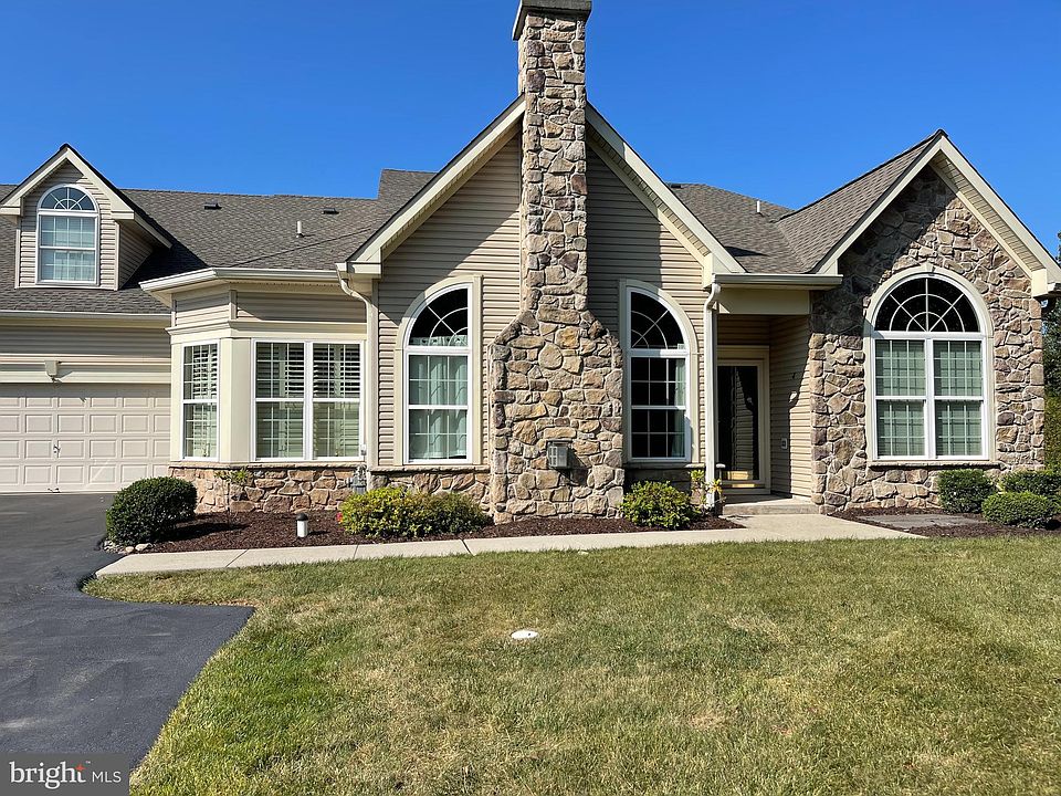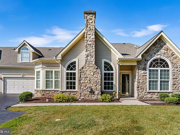 Welcome to the Villas at Linfield! This meticulously maintained end-unit carriage home is set in a serene, private location within the Linfield National Golf Club, an active adult community. The open floor plan features convenient first-floor living with three bedrooms and three full baths. Upon entering, you'll be welcomed by stunning hardwood floors, soaring 10' ceilings, and a beautiful stone gas fireplace flanked by window seats with built-in storage. Custom floor-to-ceiling shelving offers ample storage, while the dining area boasts crown molding, wainscoting, and glass doors leading to a charming paver patio. The gourmet kitchen is a chef's delight with 42" cabinets, stainless steel appliances (excluding the refrigerator), a pantry, granite countertops, a tile backsplash, and recessed lighting. The breakfast area is bathed in natural light and features plantation shutters. Adjacent to the kitchen is a laundry area with access to a two-car garage, complete with built-in shelving and extra storage. The elegant primary suite includes a ceiling fan, two walk-in closets, and a luxurious bathroom with a stall shower, soaking tub, and double vanity. A second bedroom and full tiled bath complete the main level. Upstairs, a versatile loft area with a large closet and full bath awaits. Additional storage is available with the HVAC system and water heater. The community offers a wealth of amenities, including a clubhouse with an exercise room, game room, pool table, library, full wet bar, and a grand ballroom with a full kitchen. Plus, you’re just minutes away from Limerick Premium Outlets and Route 422.