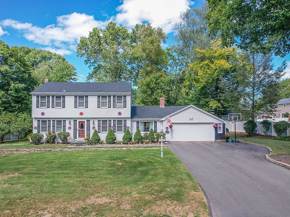 Step into this beautifully maintained 4-bedroom, 2.5-bath colonial, set in a serene and sought-after neighborhood. The main level features gleaming hardwood floors, a spacious front-to-back living room, and a kitchen with gorgeous cherry cabinets and stainless steel appliances that blend style and functionality. The sunken family room with cozy carpeting and a fireplace offers a relaxing retreat. Upstairs, the bedrooms are carpeted, with hardwood hiding beneath, ready for customization. The finished basement/storage provides endless possibilities for recreational space, along with an unfinished portion for more storage and laundry. Step outside to enjoy the wood deck and shed in the rear, perfect for outdoor projects. Recent updates include a 1-year-old roof with new chimney flashing, a 4-year-old driveway, and a 2-year-old water heater. Complete with an attached 2-car garage, this home is a true gem!