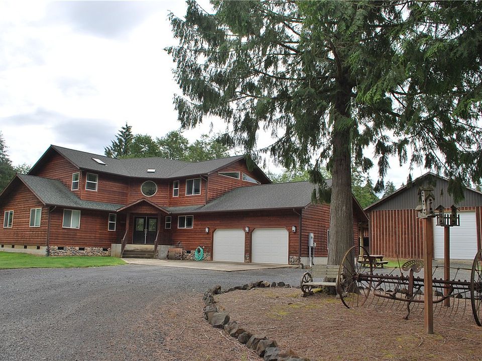 Spectacular! 3010 Sqft - Newer 4 bdrm farm house on 9.84 Acres with 4128 Shop, and a 4 Stall barn! Fenced pastures for goats and horse, round pen, tack room, hay storage. Gourmet kitchen includes granite counters, stainless steel appliances, custom cabinets and hardwood floors. Open floor plan, great room with gas rock fireplace, and lots of natural lighting. Attached 2 car garage.