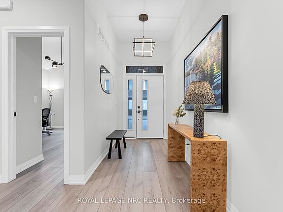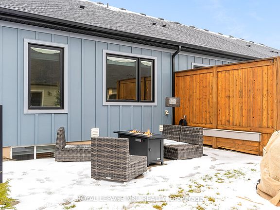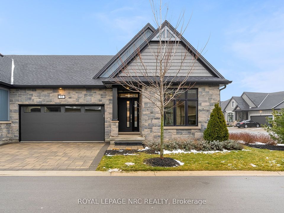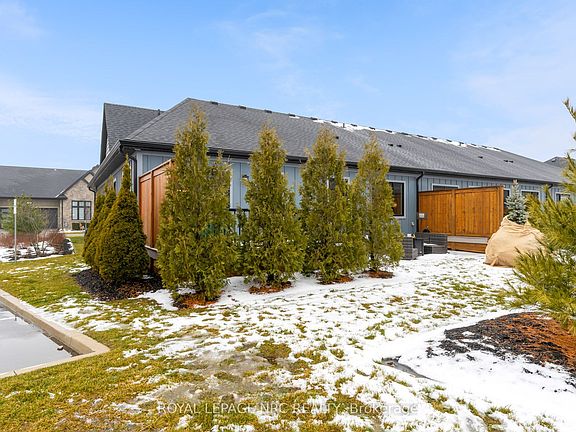 Absolutely stunning end-unit bungalow in the sought-after Lavender Fields community. This is the largest model in the neighbourhood, offering 1,508 sq ft on the main level plus 850 sq ft of professionally finished lower-level living space and an incredible deck & patio. From the moment you enter, the sense of space is apparent. Ten-foot ceilings grace the entrance and both bedrooms, while the living room features a dramatic 12-ft vaulted ceiling, creating an open, airy feel throughout. Over $200,000 in curated upgrades elevate this home. The custom kitchen showcases premium cabinetry and hardware, Silestone quartz countertops and backsplash, smart storage solutions including a spice drawer and pantry, and an extra-wide 9-ft waterfall island with storage on both sides. High-end appliances include a Bosch induction cooktop, wall oven and refrigerator, plus a Fisher & Paykel integrated two-drawer dishwasher. The restful primary retreat offers a walk-in closet, pendant lighting, floor-to-ceiling custom drapery, and a spa-inspired 4-pc ensuite with double sink vanity and glass-enclosed shower. The builder-finished lower level features an open spindle staircase, spacious recreation room, third bedroom, 3-pc bath, and ample storage. Outdoor living includes a private oversized composite deck and interlocking stone patio, surrounded by greenery. The upgraded garage features an epoxy floor, EV-charger ready rough-in, painted walls, and insulated attic. Additional features include smooth ceilings, upgraded trim and round-edge drywall, integrated central speaker system, Kusco lighting, upgraded plumbing fixtures, flow-through humidifier, whole-home water purification, 12mm extra-wide plank flooring, 3M privacy window tint, and motorized blinds. Low maintenance fees cover water, management, landscaping, and snow removal, offering true turnkey living in an exceptionally well-run, architecturally controlled community in prestigious Fonthill. Virtual Tour available.