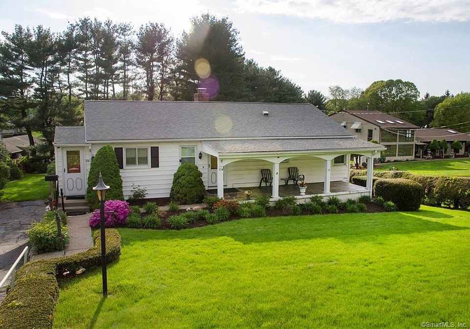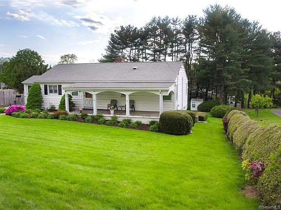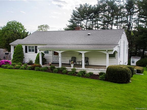 One owner ranch on Meriden's East side offers 6 rooms, 3 bedrooms, 1.1 baths. Newly refinished hardwood floors on main level.Large picture window overlooks pretty yard and brings lots of natural light into this formal living room with fireplace.Harvey replacement windows makes for an energy efficient home with extra insulation in attic.Two newer Harvey storm doors on front and side entries. Bright white plantation shutters are affixed to kitchen ,bath and front bedroom windows.Finished lower level has built in bar area and is a great place for entertainment and fun.Walk out to enclosed porches and private, landscaped yard with lilac bushes and shed.Vinyl sided, oil heat, central a/c.Beautiful front open porch with flagstone. Extra parking area on top of driveway. Great country locale with easy access to all major highways.