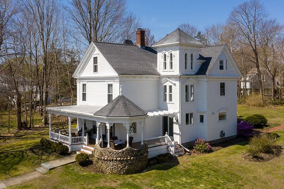 Welcome Home to "Beech Hill" circa 1854 homestead of William F. Damon in the very heart of historic Marshfield Hills Village. This beautiful antique is lovingly restored with today's modern amenities while balancing the feeling of yesteryear. The covered rocking chair porch entices you in while the exterior look is meticulously balanced by the octagonal conservatory sitting area on the left & the open gazebo on the right, back dropped by a majestic three story turret. Inside, the open floor plan embraces a chef's country kitchen w/ center island, beautiful cabinetry, wainscoting, SS appliances & quartz counter tops. The formal dining, formal living, sunny sitting room, fireplaces, hardwoods, cozy family room, game room, 1/2 bath & large pantry enhance the flow. 2nd floor..4 bedrooms/2 baths...3rd floor loft & office. 2 lush acres surround inground pool & 50x25 three level barn. General Store, Post Office, N. R. Arts Society, playground, Clift Rodgers Library & Eames Way School abound