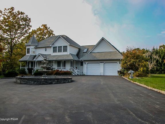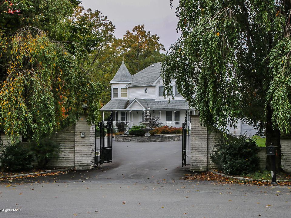 Owner Motivated to Rent/Lease Purchase Prior to 3/1/2020. Fantastic private manor in Pleasant Valley School District. Beautiful Pennsylvania Farmhouse with 4 bedrooms, 3 baths,media room,wraparound deck that enters on Olympic size pool with cabana, changing room,kitchen area and screened dining area. There is a one bedroom detached guest house, tennis courts, basketball court, several swings and play area. There is also a 3200 s.f. garage area with a car lift for repairs, office area and full bath. All this on over 4 acres with gated entrance, paved driveway with beautiful fountain. This is the buy of a lifetime!!! Don't delay, make an appointment today and start living the good life tomorrow! Or Lease Purchase Option is Available for this residence for Qualified Individuals.