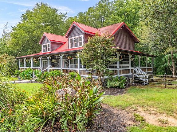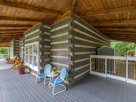 BEAUTIFUL modern day log home nestled in a quiet country setting, minutes from downtown Madison, 20 mins to Greensboro. This spacious log home has an open floor plan, primary BR on main w/bear claw tub, separate shower. Warm colors, unique lighting fixtures, whiskey barrel sink, barn door, large wood ceiling beams , stone fireplace, beautiful hardwoods, large wrap around porch & charming screened in porch create this one of a kind. Large open kitchen with solid surface countertops, breakfast bar & Jenn Air cooktop. Upstairs has a loft, open to the first floor, & plenty of room for an additional den. This hobbyist dream home comes with a custom designed metal, climate controlled shop, designed to look like an old service station (see attachments for complete description). Additionally, there is a 20x20 metal carport on one side of the shop, RV parking on other side. A separate large detached 2 car garage, separate 4 car barn sits to the side of the shop & two large storage sheds.