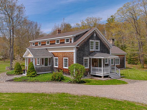 A breathtaking fusion of timeless elegance and modern comfort, this newly renovated shingle-style retreat is nestled on 4.1 idyllic acres just minutes from Freeport Village, pristine beaches, scenic parks, and charming local shops. A winding drive, bordered by stone walls and mature trees, sets the tone as serenity unfolds across rolling, manicured grounds. Exquisitely built, the home marries old-world craftsmanship with a clean, sophisticated design. Gleaming wide pine floors - milled from trees on the property - anchor sun-drenched interiors, while a graceful floor plan accommodates both effortless daily living and grand entertaining. At its heart, a dramatic great room stuns with 15-foot ceilings, hand-hewn beams, and a commanding fieldstone fireplace. French doors and walls of windows blur the line between inside and out, opening to a brick terrace and private backyard sanctuary. The farmhouse kitchen is a showpiece of charm and function, featuring premium appliances including a Bertazzoni stove, leathered granite counters, slate sink, a butcher block island, and the whimsical ambiance of a restored Glenwood stove - every detail curated for style and utility. Additional first-floor highlights include a cozy den with built-ins, a sunlit office, a mudroom, a powder room, and a full laundry. Upstairs, discover three spacious bedrooms and two baths, including a peaceful primary suite with a spa-like soaking tub and a custom walk-in closet. This storybook setting is just a five-minute bike ride to Harraseeket Lunch & Lobster, with Winslow Park's 90 acres of shoreline, trails, and boating just moments away. Brewer's Marina is nearby, and the renowned Freeport outlets and L.L. Bean are only ten minutes from home. Portland's celebrated dining and arts scene lies just twenty minutes south, while Boston is reachable in two hours. This is Maine - authentic, inviting, and utterly enchanting.
