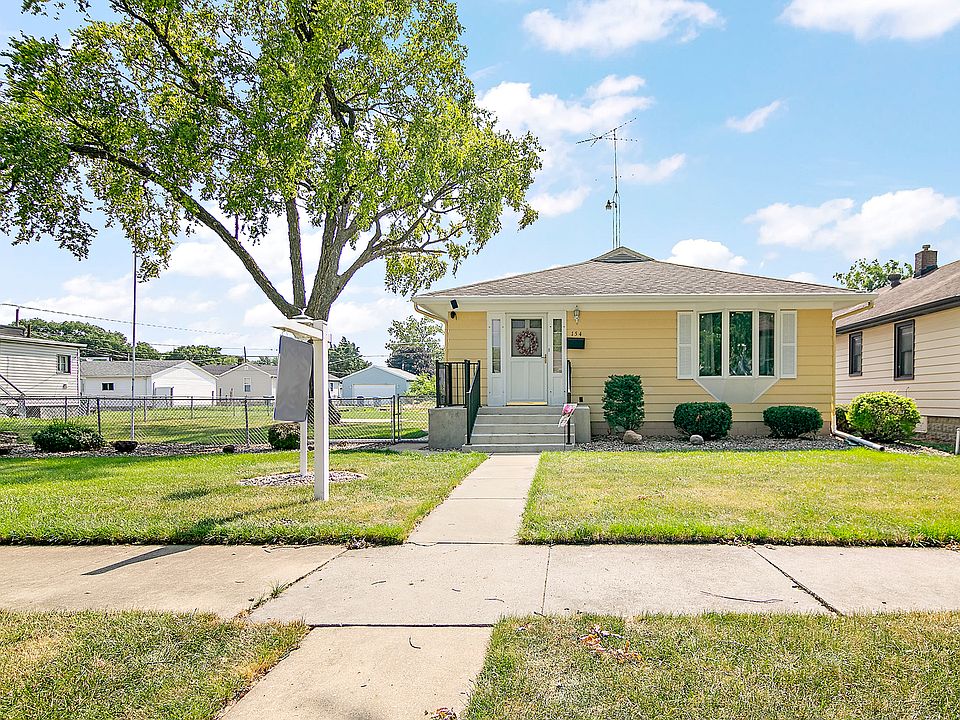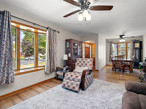 Beautifully maintained! This classic ranch style home offers timeless charm and thoughtful updates. The spacious living and dining area is filled with natural light and highlighted by beautiful hardwood floors. The efficient kitchen features 42" cabinets and excellent storage. A vintage inspired hall bath showcases stylish tile and a retro mirror, adding character to the home. The full basement is an entertainer's dream with a huge rec room, a dry bar, and an entire wall of built-in storage. You'll also find a large laundry/utility area and a workshop an ideal use of space. Set on two lots, the fenced in property boasts mature landscaping, concrete patio and a 3-car garage. This home is truly a rare find beautifully cared for and ready for its next chapter!