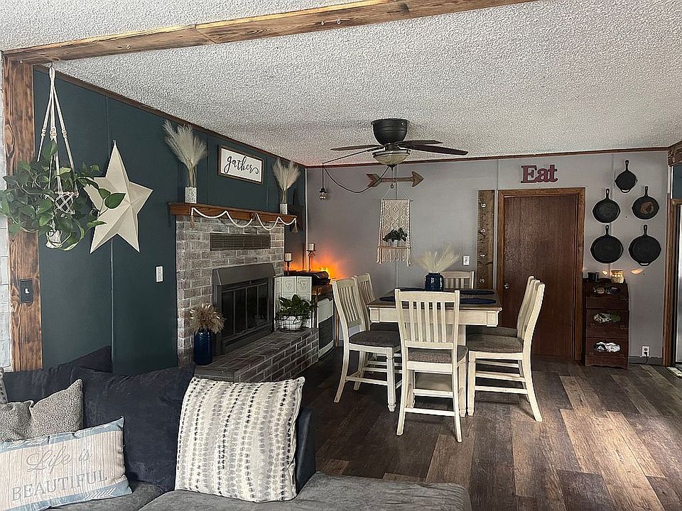 - Interior Features: Ceiling Fans, Fireplace, Flooring- Tile, Flooring- Wood, Flooring- Vinyl