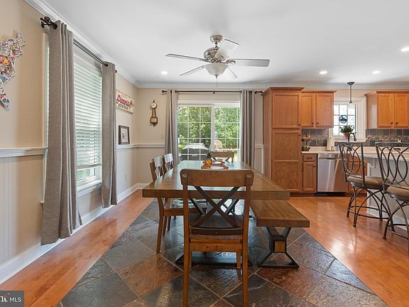 • Ceiling Fan(s), Chair Railings, Crown Molding, Dining Area, Kitchen Island, Recessed Lighting, Upgraded Countertops, Wainscotting