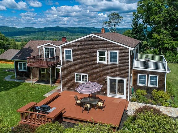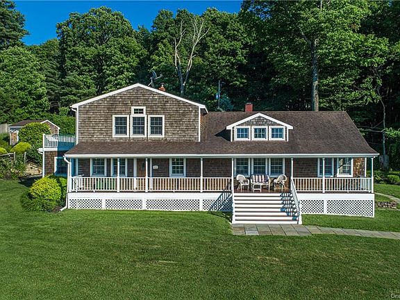 Enjoy the good life on South Quaker Hill Road while taking in the mountain sunset poolside, from your wrap-around front porch, or from the master suite's private deck. This 2,866 SF cedar shake colonial is the perfect home for a carefree lifestyle. Enter from the rocking chair porch & to your left is a living room & dining area with sliders to the rear deck. A large formal dining room & kitchen flank this great room. To the right a family room with a vaulted ceiling with wood beams & a massive stone fireplace. Beyond are the two first-level bedrooms & full bath. A wooden staircase leads to the master suite that features a grandly sized bedroom, a walk-in closet & a full bath with whirlpool tub. French doors lead to a balcony overlooking the pool. Outdoors, a quarried limestone path & stairs lead to the kidney shaped pool surrounded by the same stonework. With a manicured yard, pool shed & detached 2 car garage. Heaven awaits only 1.6 miles to Metro North, less to shops & restaurants.
