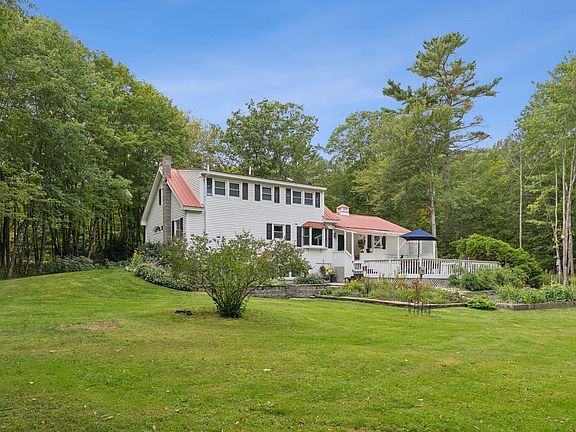 Meticulously maintained and beautifully landscaped, this charming Cape-style home offers the perfect blend of rural tranquility and modern convenience. Nestled on a private 2.77 acres, the property is just a short walk to the deeded right-of-way access to Middle Range Pond, where you can enjoy a sandy beach and peaceful waterfront setting. This home features a thoughtfully designed layout, including a first-floor bedroom with direct access to a full bath. Tastefully designed kitchen and expansive back deck overlooking the serene backyard with seasonal water views this space is ideal for entertaining or enjoying the peace and quiet. On the second floor you'll find two additional bedrooms, a full bath, and generous storage in the eaves. The finished daylight basement offers versatile living space, including a dedicated office area, cozy family room with a propane stove on a brick hearth, half bath, laundry area, and extra storage. Additional highlights include an attached two-car garage, detached workshop with power, ideal for hobbies or projects, additional shed currently used for storage but could be converted back into a screened house, on demand generator for peace of mind during power outages, new hardwood floors and windows offering enhanced energy efficiency! This property offers so much more than just a place to live—it's a lifestyle of comfort, privacy, and access to the natural beauty of Maine. Don't miss your opportunity to own this exceptional home!