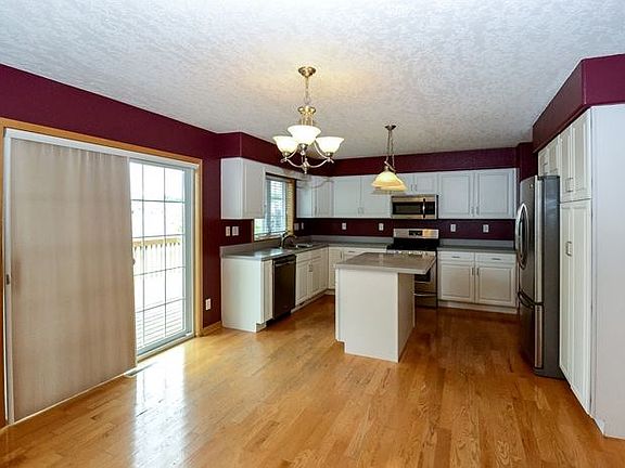 Beautiful 1.5 story on large walk-out lot. Near schools. Wood floors throughout kitchen, dining and living room. Vaulted ceilings and stone gas fireplace. Lots of natural light. Kitchen with center island, stainless steel appliances and pantry. Main floor master suite has large walk-in closet, soak tub and double sink. Main floor laundry room, washer/dryer stay. Finished walkout lower level. Abundant storage. Deck and patio overlook spacious backyard. Large storage shed and custom landscaping.