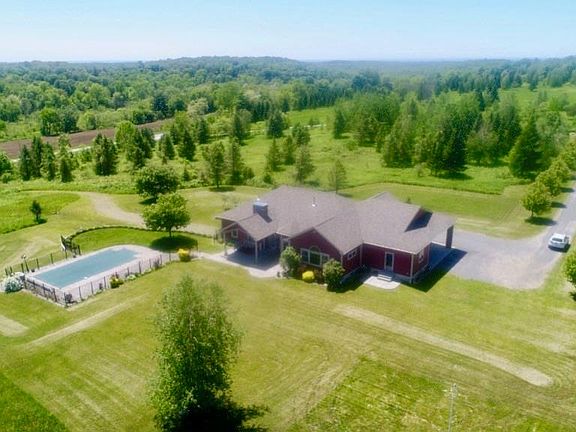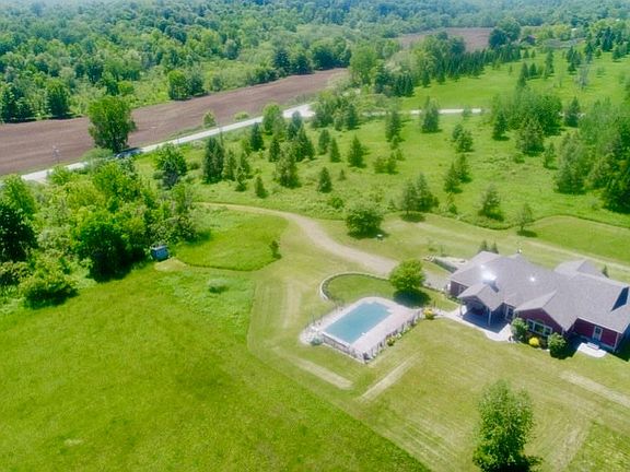 GORGEOUS!! Be prepared to fall in love with this home. Offering 38.81 acres, you will be pleased w/ its privacy as it sits off the road, drive up the 400' driveway and come inside! This 3 BR with large office that could be used as a 4th BR, 3.5 bath has every detail you're looking for. Private Master Suite with luxurious bath with Soaking tub and Shower, heated floor, you will definitely be impressed.Quality built by the current owners in 2009 with cherry hardwood floors, gorgeous kitchen with hickory cabinets that flows nicely in to the formal dining room. Large Family Room with vaulted ceilings The basement has a large kitchen/dining/living/workout area with full bath and heated floors, AMAZING space. Outdoor concrete patio overlooks the in-ground pool and huge yard!!