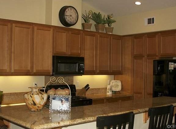 This is a turn-key, picture perfect carriage home with a one-car garage and private one-car carport. Full two bedrooms, plantation shutters throughout entire home. Great room with vaulted ceiling, open floor plan with deck between great room and secondary bedroom with sliding doors as access. Granite kitchen counters and bar seating at counter for eating and/or entertaining. Master bedroom with vaulted ceiling and ceiling fan offers relaxing mome nts and a large walk-in closet. This home is light, bright and cheery. The home also features additional cabinetry in linen and laundry areas.