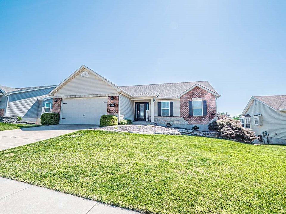 GORGEOUS RANCH HOME - COMPLETELY FENCED BACKYARD - DECK WITH STEPS - WALKOUT LOWER LEVEL WITH LARGE PATIO AREA - Step into the entry foyer of this vaulted open floor plan with real hardwood floors throughout. Plant shelves in the great room, kitchen and primary owner's suite. Gleaming Granite Countertops adorn the well-appointed kitchen, complete with custom tile backsplash and the refrigerator is included. Main floor laundry room. Vaulted Primary Bedroom with En Suite, whirlpool tub, custom tile shower, double bowl vanity, large walk-in closet. The walkout lower level is awaiting your finishing touches with a rough-in bathroom and windows for a future bedroom and family room with a sliding door to the fenced level backyard and huge patio area. The home comes complete with a 1 year Choice Ultimate Home Warranty. Move in and enjoy the nearby parks, pools, Splash Station, and restaurants and shopping in downtown Wentzville.