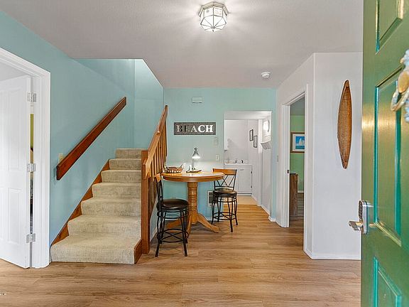 The second floor boasts an open-concept layout, complete with a spacious kitchen, dining area, and inviting living room. Step out onto the deck to listen to the waves and enjoy views of the bay and the picturesque town of Yachats. The third floor offers a versatile loft space/3rd bedroom perfect for guests or utilized as a home office. All of this is just a short stroll from beach access and scenic walking trails that wind along the breathtaking Pacific Ocean!