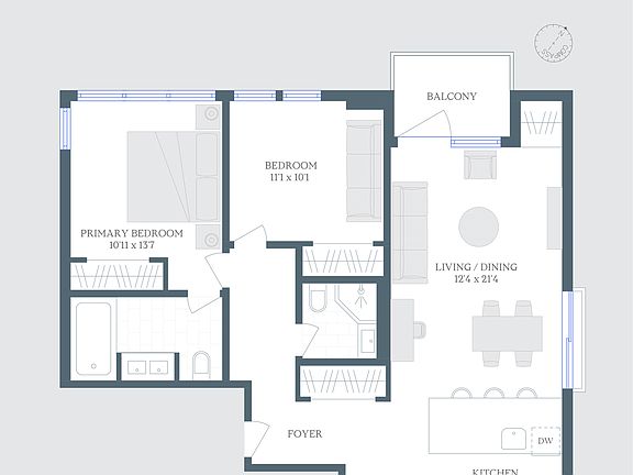 This spacious 2-bedroom, 2-bathroom apartment in Williamsburg offers 1,025 square feet of living space, complete with a private balcony and a dedicated parking spot. The home is filled with natural light from its triple exposures and includes an in-unit washer/dryer. The kitchen is beautifully renovated, offering ample counter and cabinet space. The expansive living and dining area is perfect for entertaining, and the primary bedroom features an en-suite bathroom with dual sinks. This elevator building boasts an array of amenities, including a parking garage, gym, and bike storage. It's ideally situated just two blocks from the Graham Ave L train, in one of NYC's most desirable neighborhoods. $20 application fee person for the owner. Once approved by the owner and the lease has been signed we will get started on the Condo board application. One time $350 condo application fee and $500 move in fee paid once you have signed a lease. Let me know if you have any questions about the process of renting in a Condo.