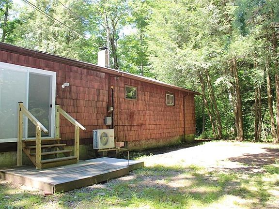Modern 2 bedroom 1 bath home in the woods on 3 acres under 100k! Look at the pictures online, then come take a look in person and make it yours today! At this price, works as personal residence, weekend retreat, or investment rental! Master bedroom deck overlooking small babbling brook. Fireplace insert keeps it toasty in the winter and mini split unit keeps it cool in the summer.
