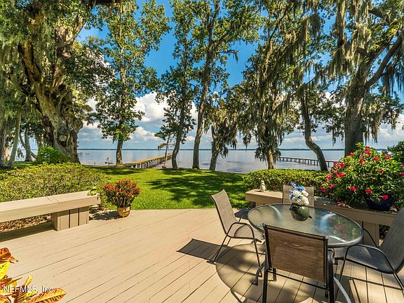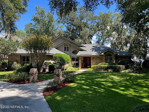 Custom riverfront home is being offered on the market for the first time since it was built. The mostly brick residence is situated at the end of a picturesque, forested road in a small private enclave of homes conveniently located in the center of Fleming Island. The property is high and dry and has excellent river views. The roof is approximately two years old, the house features an open floor plan, a brick fireplace, a large river front deck, as well as a three-car garage, and a brand new dock. This beautiful property has a number of magnificent live oak trees as well as a nearly three-mile view across the majestic St. Johns River.