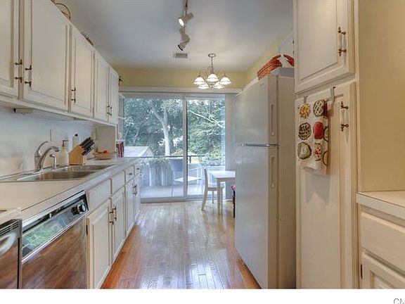 Sunny second floor unit with glass sliders from both Eat In Kitchen and Living Room to private deck with pretty views towards the woods! Includes 1 Car Garage. Vaulted ceilings in spacious Living Room adjacent to Dining Area. Light and bright Eat-In Kitchen in white. Master Suite with Full Bath and walk in closet. 2 Additional Bedrooms and another Full Bath off the hall! In-unit Laundry. Easy access to the "long season" heated swimming pool and club house (available for functions) and paddle tennis courts. Just 3/4 mile walk to Southport Train and Village, Restaurants and Shops.