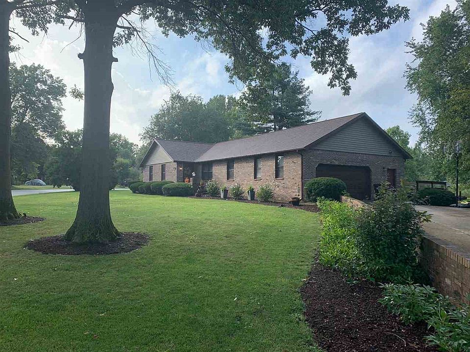 Looking for a 3 bedroom, 2 bath ranch with water frontage? This gorgeous home is just what you need! Located in Woodgate subdivision minutes from schools, shopping and restaurants, this home has it all! Upon entering, the cathedral ceilings and full brick wall fireplace are an inviting space for entertaining the entire family. The formal dining room just off the kitchen is perfect for your holiday parties along with a beautiful wood deck with waterfront views! The master is a great size and features its own attached bath with updates! Two additional bedrooms are a great size with large closets, great for all the extras! A main level laundry room right off the kitchen is the perfect mud room with access to the garage as well. Updates include new roof 2017, all new plumbing 2018, new garage door 2018, kitchen/laundry floors 2019, carpets & hardwoods 2017, bathroom floors 2019, appliances 2017! Don't miss your opportunity to view this beautiful home in a great neighborhood!
