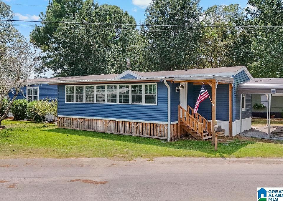 Built in 2022, this custom 16x80 mobile home offers modern comfort in the sought-after Spring Creek area of Lay Lake. With 3 bedrooms and 2 baths, the split-bedroom layout provides privacy while the open living spaces make it easy to gather with family and friends. A bright sunroom adds extra space to relax and enjoy the peaceful setting. The property also includes a convenient storage building, perfect for lake toys or tools and a 2 car carport. Situated on a leased lot, this home makes an excellent weekend getaway or a comfortable full-time residence, just steps from the water and all that lake life has to offer.