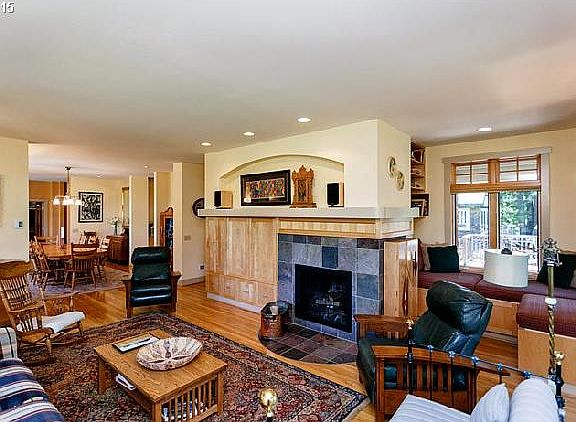 Full Time or Vacation Home; Private 20acre with stunning 4650 sqft Craftsman Retreat & 486sf guest hs. Fabulous construction: remodeled chef''s kitchen, 2 cozy fireplaces, radiant heat with remote dial up, 4+ bedrooms/ 4.5baths. Lovely master suite! Wrap around decks! Easy care gardens & forested trails out your door. Pretty Mt. Adams view. Paved road access; 90min to Portland! Serene & relaxing. Room for family, guests & entertaining!