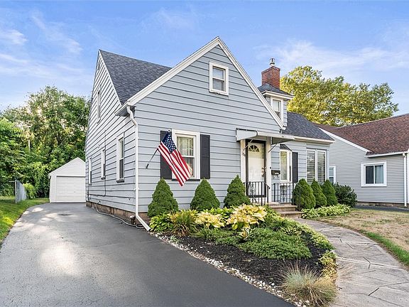 Welcome to 154 Stonecliff Drive in Greece! This charming Cape Cod offers 4 bedrooms, 1.5 baths, and a detached garage on a nicely sized lot. Step inside to a freshly painted living room with a cozy gas fireplace and a bright 3-season room—perfect for relaxing mornings. The eat-in kitchen features stainless steel appliances and oak cabinets, while the first floor includes 2 bedrooms and a full bath. Upstairs, you’ll find 2 more spacious bedrooms with plenty of storage. The partially finished basement provides additional living space, a half bath, and laundry. Outside, the backyard is ideal for entertaining and gatherings. Don’t miss this move-in-ready home! Showings begin September 8th at noon. Negotiations start September 15th at noon. Open House: Saturday, September 13th, 11 AM–1 PM.