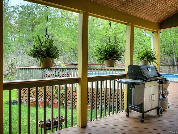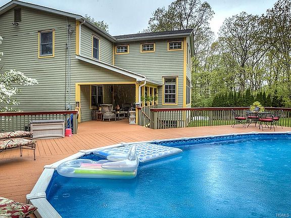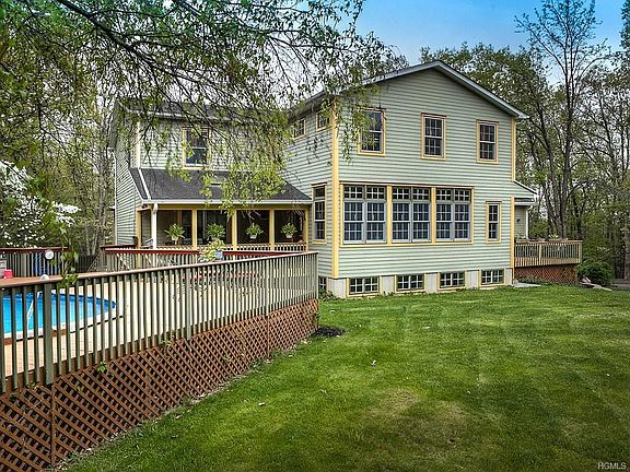 This is an amazing property! Large eat in kitchen with granite counter tops surrounded by windows, beautiful wood floors, family room with beamed ceiling and fireplace, formal dining room, bedroom and full bath on first floor, and a comfortable living room off the kitchen with a wood stove, second floor has a large master suite, three additional bedrooms and bath. Exceptional family room on lower level with high ceilings and a wall of windows. Out the kitchen door is a lovely, covered deck for summer entertaining that wraps into an above ground pool. Other features are a mud room and walk in pantry and two car garage. The back property is fenced and has a small barn, very private setting, great commuting location.