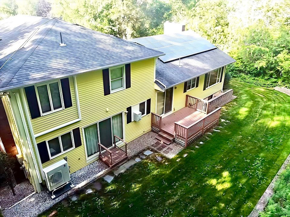 A walk to the shops and restaurants of Maynard's vibrant downtown! This classic mid-century modern home has been meticulously cared for and has much to offer! Updates include a ductless cool/hot air mini-split system powered by solar panels, glistening oak hardwood floors, and beautiful landscaping. The marble tiled foyer and oversized first floor spaces share an open floor plan design. The grand living room features a marble fireplace and giant picture windows. The dining room, which also features a large picture window, is open to both the living room and kitchen, which boasts stainless appliances (including double wall ovens) and opens to the sunken family room. A walk up the grand, wide stairway reveals three large bedrooms, including the primary, which has two closets and an en suite full tiled bath. The lower level features a full wet bar and multiple rooms, including a full bath and second kitchen, offering flexibility for many uses. Large driveway and a two car attached garage.