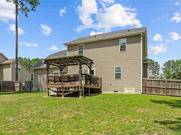 Welcome to Gwen Oaks where this amazing two-story home offers comfort and style! Beginning with 3 bedrooms and 2.5 bathrooms, this home has over 3000 sq ft and includes an office, flex/bonus room with closet, a media area and an additional room with a closet that could be used as an additional bedroom. The main level features an inviting formal dining room, office/gym, and an open floor plan that seamlessly connects the living and kitchen spaces. The kitchen boasts stainless steel appliances, pantry, and a cozy nook. The main level primary suite includes a tray ceiling, dual sinks, soaking tub, separate shower, and a walk-in closet. Upstairs, you'll find additional bedrooms, a bonus room, a media area, a well-appointed guest bathroom, and the laundry room. This home sits on a large 1+ acre lot with a fenced backyard w/in 20-minute drive to base. Enjoy the benefits of a community that feels secluded but is a short drive to shopping and restaurants. Make this home yours today!