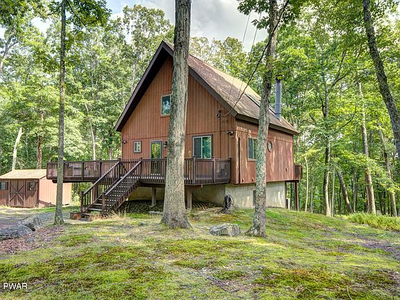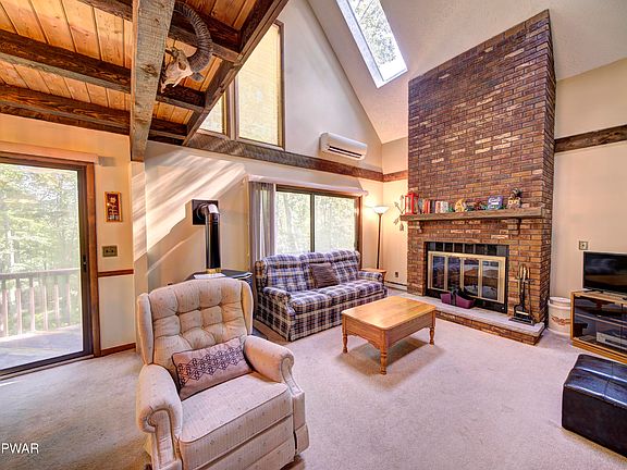 The perfect Pocono/Masthope get-away awaits you! This move-in-ready 4 bedroom/2 bathroom home features an open main level floor plan, a bedroom and full bathroom on the main level, 3 bedrooms and a bathroom on the lower level with walk-out access, AND a huge entertaining loft! Enjoy dinners on the expansive deck overlooking the greenbelt privacy, and cozy movie nights nestled in the living room, complete with a wood burning fireplace and a propane stove. Furniture included! Masthope features skiing at Ski Big Bear, 2 pools (one brand new!), a motorboat friendly Westcolang Lake, sandy beach, fitness center, horseback riding, Delaware River park, playgrounds and so much more!
